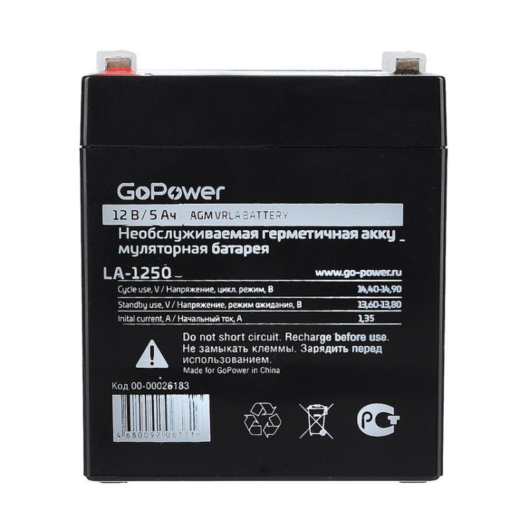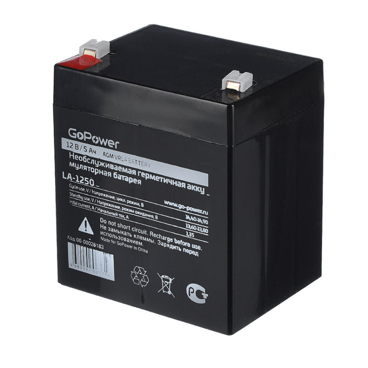 GoPower LA-1250 – это компактная и эффективная свинцово-кислотная аккумуляторная батарея с емкостью 5 Ah и номинальным напряжением 12 В. Она предназначена для работы в системах с малым энергопотреблением, таких как охранные системы, аварийное освещение, медицинское оборудование и другие автономные устройства.
