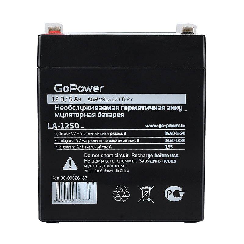 Свинцово-кислотная аккумуляторная батарея GoPower LA-1250 12V 5Ah