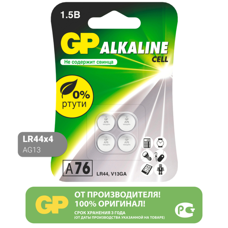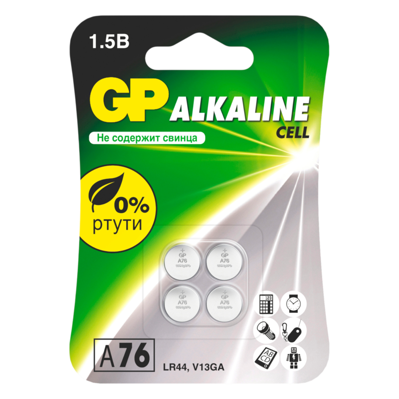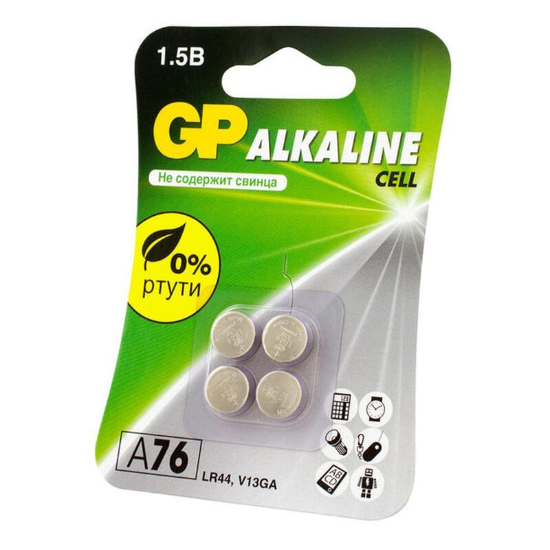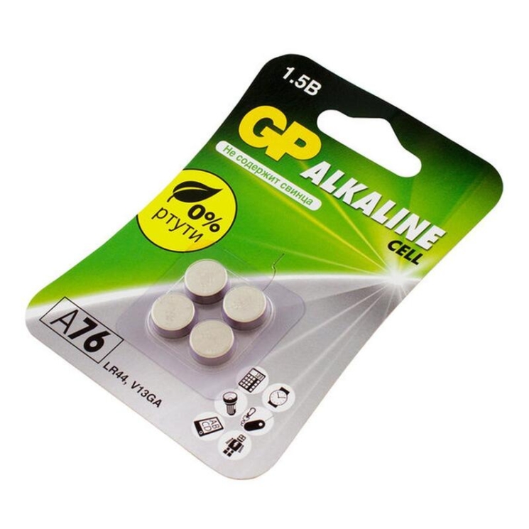 Алкалиновые пуговичные батарейки GP A76 - 4 шт. на одном блистере