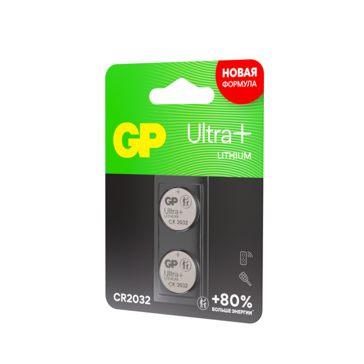Литиевая дисковая батарейка GP Lithium Ultra Plus CR2032 - 2 шт. в блистере