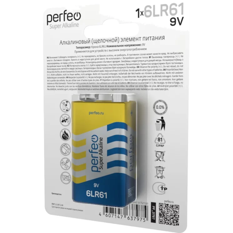 Недорогая батарейка PERFEO 6LR61 BL-1 имеет щёлочной состав (алкалиновая), подходит для бытового и промышленного использования в системах с средним энергопотреблением.