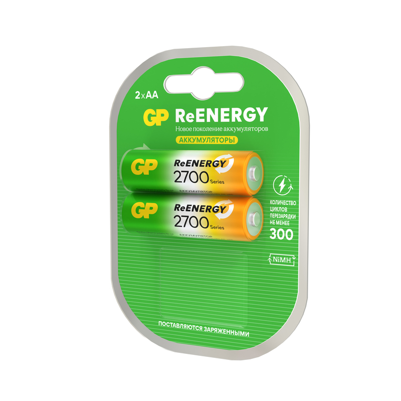 Перезаряжаемые аккумуляторы GP ReEnergy 270AAHC AA, емкость 2650 мАч - 2 шт. в клемшеле