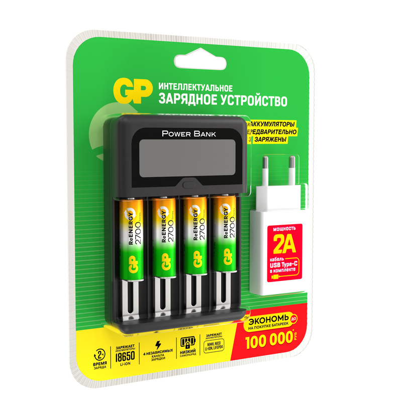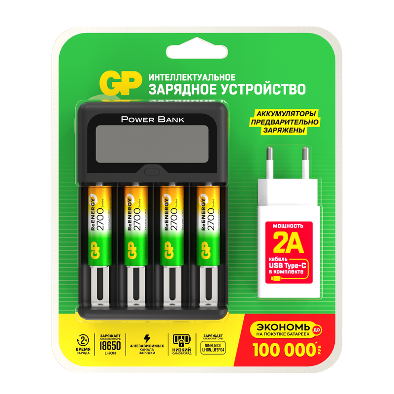 Комплект GP 270AAHC/MHSPBA включает зарядное устройство на 4 слота, сетевой блок питания и 4 аккумулятора AA ёмкостью 2650mAh. Подходит для регулярного использования в бытовой электронике. Обеспечивает удобную и безопасную зарядку Ni-Mh аккумуляторов форматов AA и AAA.