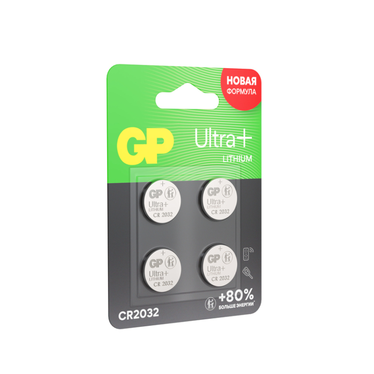 Литиевая дисковая батарейка GP Lithium Ultra Plus CR2032 - 4 шт. в блистере