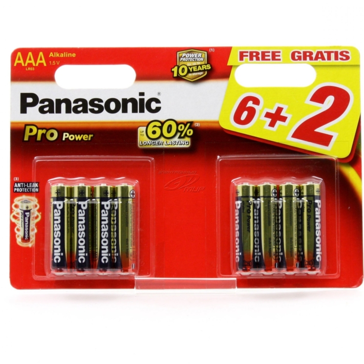 Элемент питания Panasonic LR03 Pro Power 1.5V BL-6+2 (96/34560)