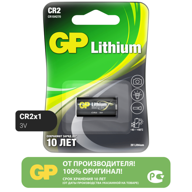 Литиевая батарейка GP CR2 (CR15270) 3V Photo Lithium [ 1 шт, блистер ]