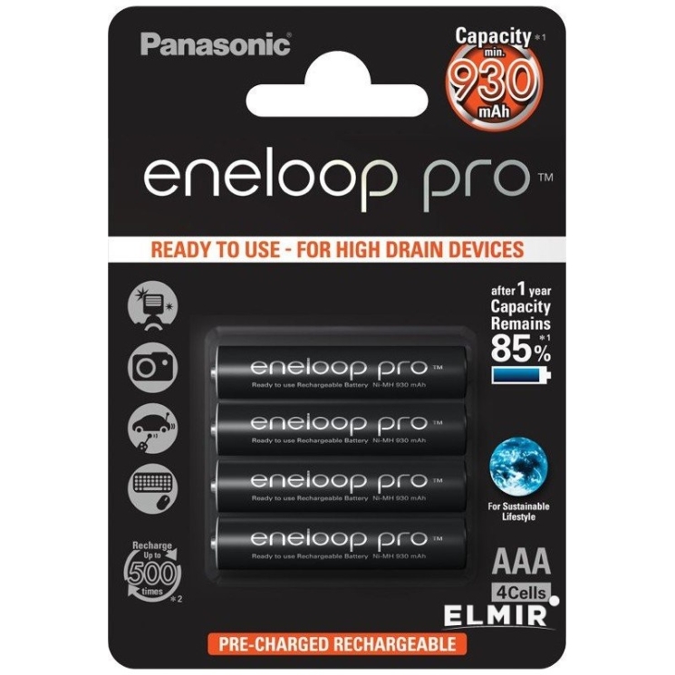 Элемент питания Panasonic Eneloop Pro HR03 930 mAh 1.2V BL-4 (48/576)
