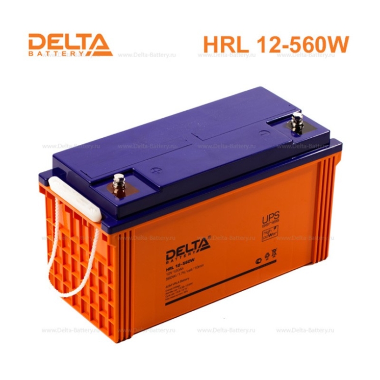 Герметизированный VRLA cвинцово-кислотный аккумулятор Delta HRL 12-560W напряжением 12В и емкостью 120Ач изготовлен по технологии AGM (с микропористым заполнителем, пропитанным электролитом). Корпус изготовлен из негорючего ABS пластика. Срок службы аккумулятора достигает 10-12 лет. Аккумулятор относится к линейке DELTA UPS series и предназначен для работы в системах бесперебойного питания (ИБП), системах связи, ЦОД. Обладает низким внутренним сопротивлением и повышенной энергоотдачей (за счет использования более чистого состава свинца).