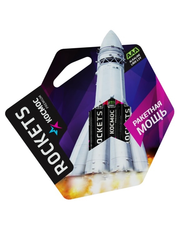 Мизинчиковая алкалиновая батарейка Космос AAA 1.5V Premium Rockets Alkaline Battery [ по 4 шт ]
