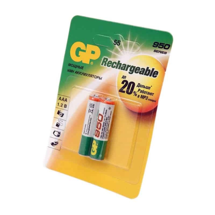 Мизинчиковая аккумуляторная батарейка GP AAA 950 mAh 1.2V Ni-Mh Rechargeable Battery [ по 2 шт ]