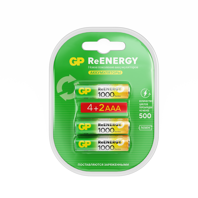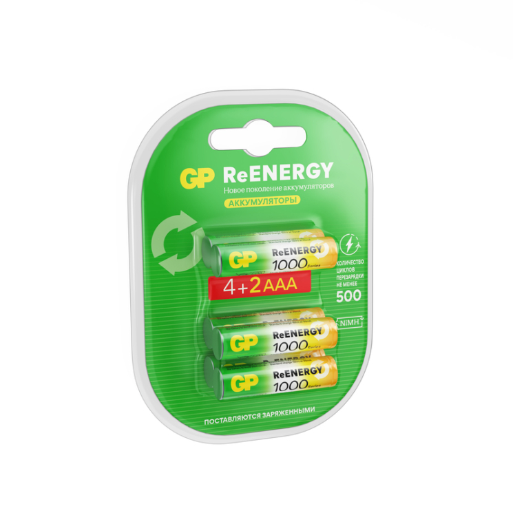 Аккумуляторы GP ReEnergy AAA (набор 4+2) — универсальные перезаряжаемые элементы питания для повседневных устройств: пультов, беспроводных аксессуаров, игрушек и другой электроники. Обеспечивают стабильное напряжение 1.2 В и подходят для многократного использования.