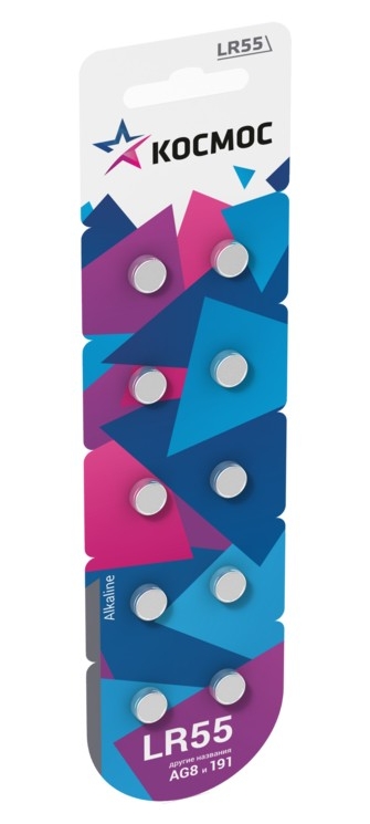 Алкалиновая батарейка таблетка Космос LR55 1.5V Alkaline Battery [ по 10 шт ]
