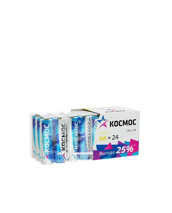 Пальчиковая алкалиновая батарейка Космос AA 1.5V Alkaline Battery [ по 24 шт ]