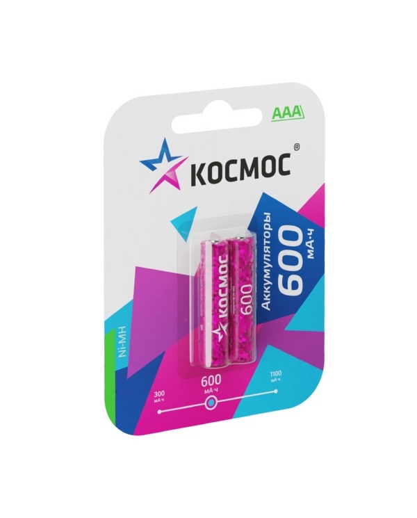 Мизинчиковая аккумуляторная батарейка Космос AAA 600 mAh 1.2V Ni-Mh [ по 2 шт ]