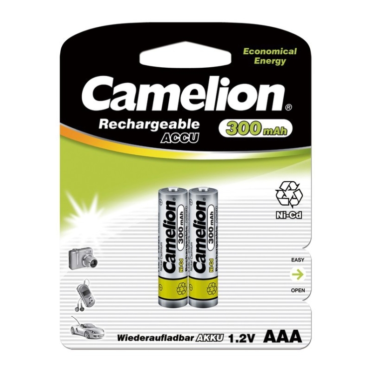Мизинчиковая аккумуляторная батарейка Camelion AAA 300 mAh 1.2V Ni-Cd Rechargeable Battery [ по 2 шт ]