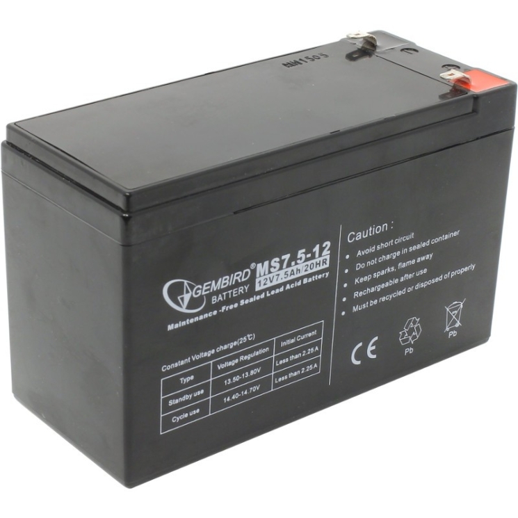Аккумулятор для Источников Бесперебойного Питания “Gembird”/”Energenie” BAT-12V7.5AH. Аккумуляторная батарея для ИБП Gembird Energenie BAT12V7Ah – это легкое и компактное устройство для практичной мгновенной подзарядки Вашего ИБП. В отсутствие электричества оборудование будет бесперебойно работать на протяжении длительного времени после подключения этого элемента зарядки. Отключенная электроэнергия теперь не станет помехой, если у Вас имеется источник питания Gembird Energenie.