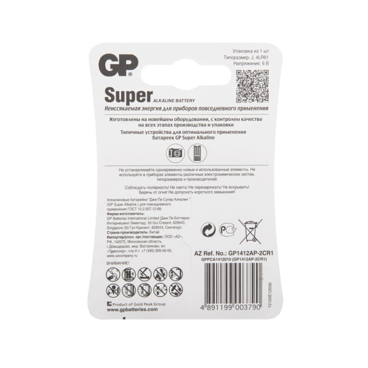 Батарейка GP 1412AP (4LR61) BL-1 в блистере 1 шт подходят для бытовых и промышленных целей. В нашем интернет-магазине вы можете купить Батарейка GP 1412AP (4LR61) BL-1 в блистере 1 шт оптом и в розницу с доставкой по России. Остались вопросы – наши специалисты с удовольствием вас проконсультируют и подберут оптимальные элементы питания!
