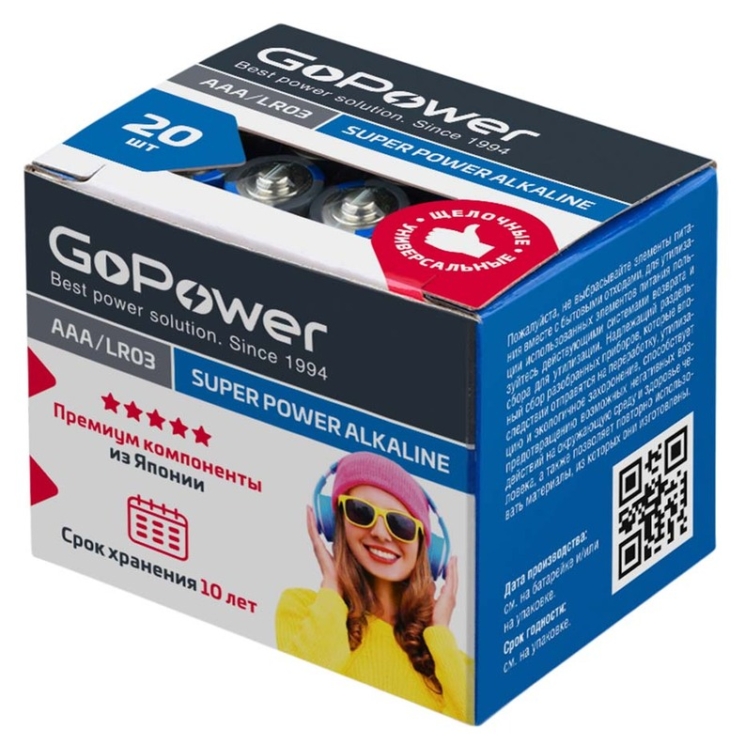 Батарейки щелочные алкалиновые GoPower Alkaline AAA / LR03 20 штук в коробке