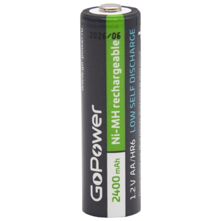 Ni-MH аккумулятор размера АА/НR6 емкостью 2400мАч. Ni-MH аккумуляторы GoPower с низким саморазрядом перезаряжаемы до 1000 раз и заменяют батарейки во всех современных устройствах. Изготовлены по технологии Ready-to-Use с использованием премиальных компонентов, поэтому поставляются уже заряженными и готовы к использованию сразу после покупки. Сохраняют до 80% заряда в течение не менее 2 лет хранения.