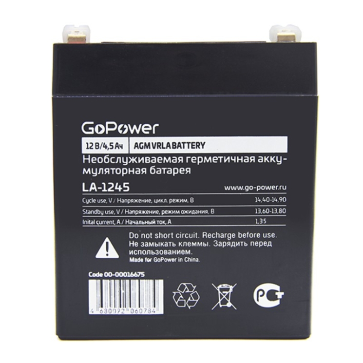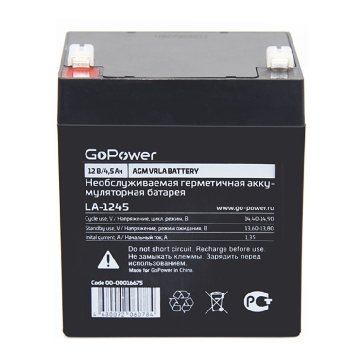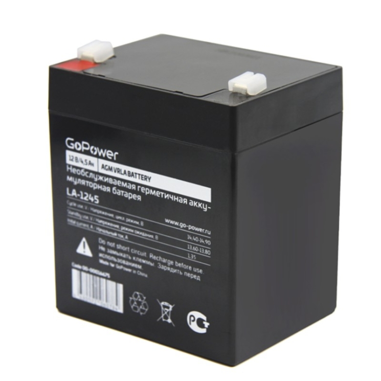 Свинцово-кислотная аккумуляторная батарея GoPower LA-1245 на 4.5Ah 12V