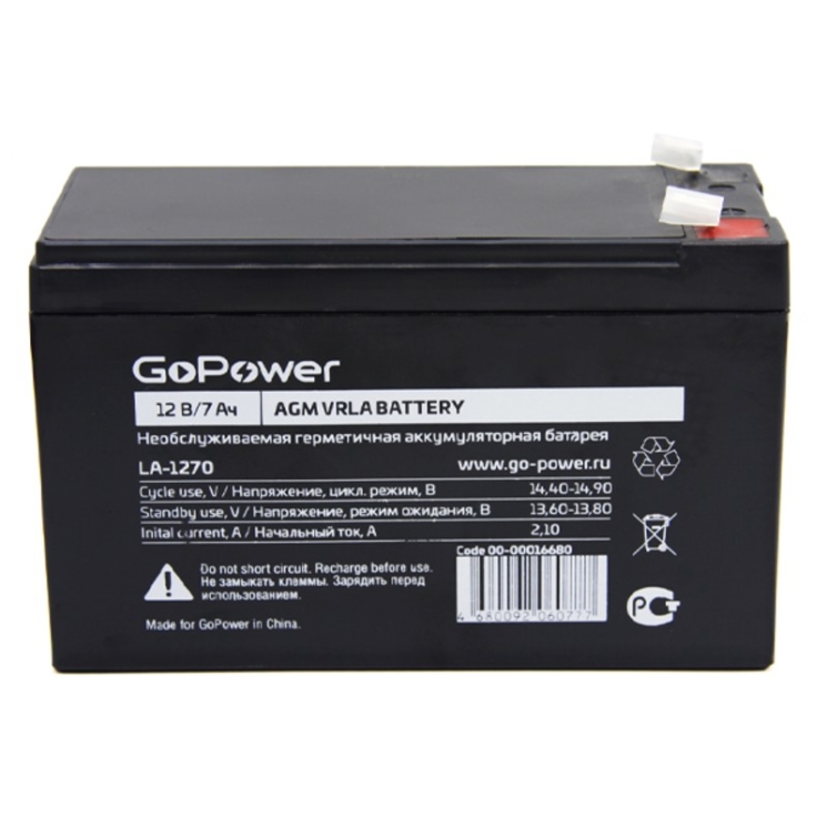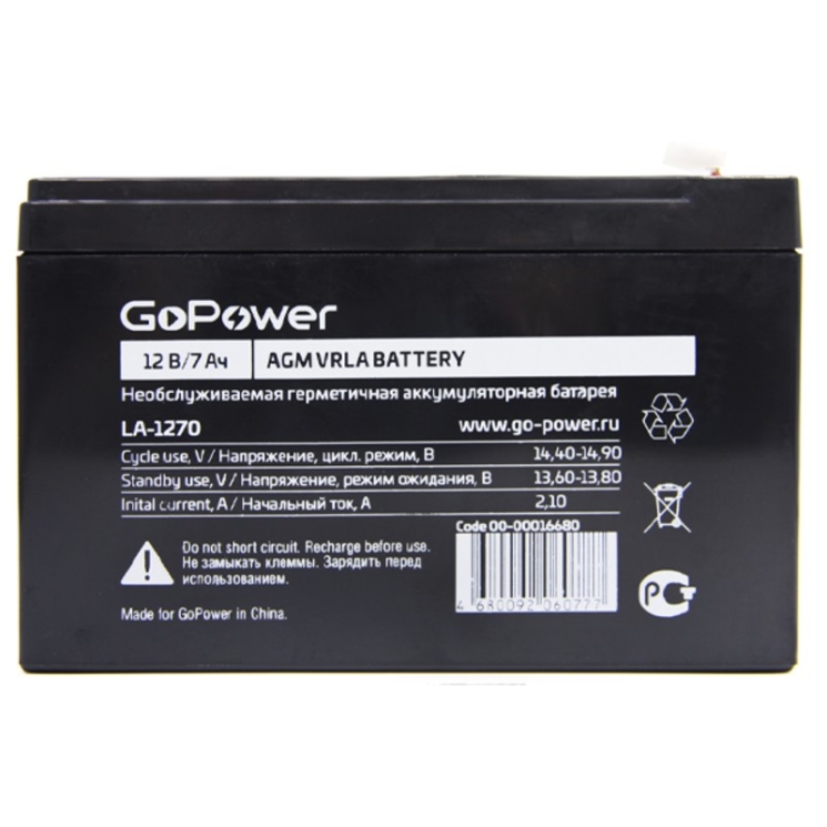 Аккумулятор GoPower LA-1270 12V 7Ah клеммы T2/ F2 (5)