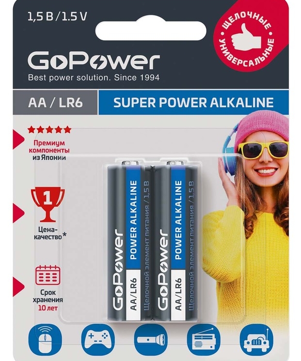 Щелочные батарейки GoPower серии SUPER POWER ALKALINE универсального назначения, они идеально подходят для большинства современных устройств. Благодаря улучшенной формуле эти элементы питания работают дольше.