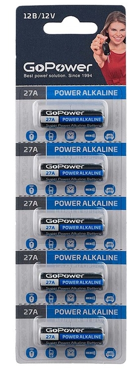 Алкалиновые батарейки GoPower LR27 A27 MN27 5 штук в блистере