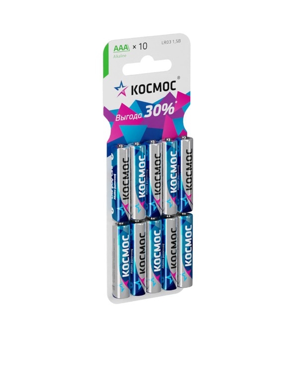 Мизинчиковая алкалиновая батарейка Космос AAA 1.5V Alkaline Battery [ по 10 шт ]