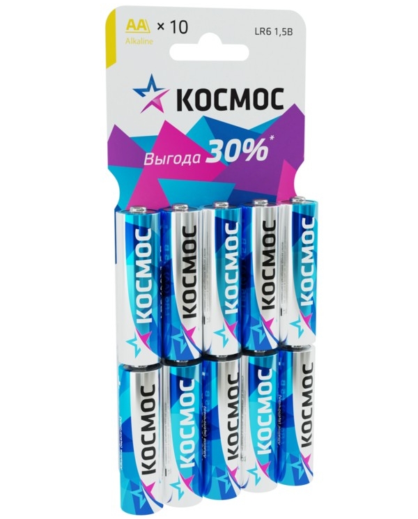 Пальчиковая алкалиновая батарейка Космос AA 1.5V Alkaline Battery [ по 10 шт ]