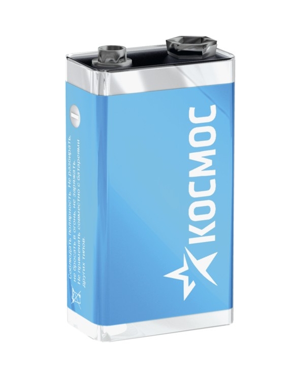 Щелочные (алкалиновые) батарейки Космос – в упаковке 1 шт в прозрачной пленке. Типоразмер батареек 9В также называют «крона» (на приборах-потребителях может обозначаться как 6LR61, 6F22, PP3). Работают как дорогие батарейки – по результатам независимых тестов показали результат сопоставимый с ТОП-3 известных батареек. Продолжительный срок годности – могут храниться до 7 лет, не потеряв при этом значительной емкости энергии.