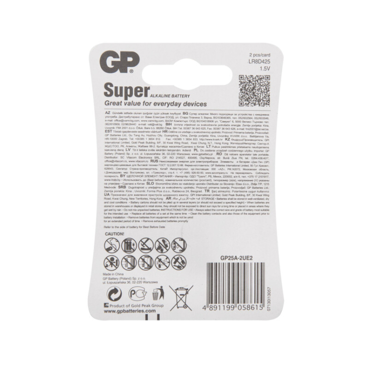 Щелочная батарейка GP 25A (AAAA / LR61) с напряжением 1,5 В предназначена для компактных электронных устройств, где требуется стабильное и долговечное питание. Обеспечивает надёжную работу стилусов, лазерных указок и медицинских приборов. Поставляется в удобной блистерной упаковке BL2, оптимальной для розничной продажи и хранения.