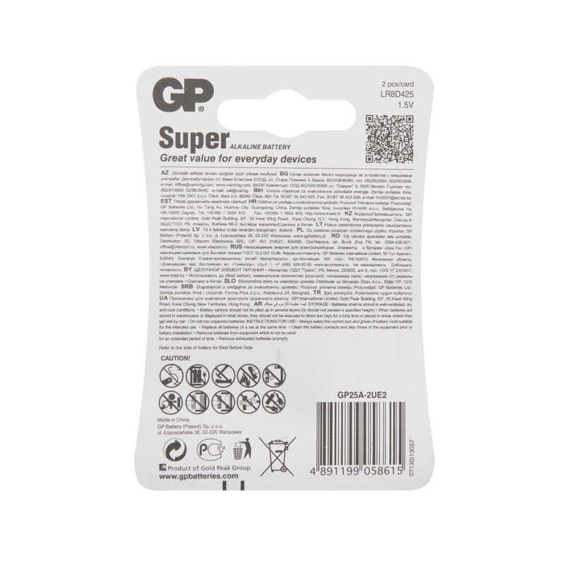 Элемент питания GP 25A AAAA Alkaline 1.5V (LR61), 2 шт