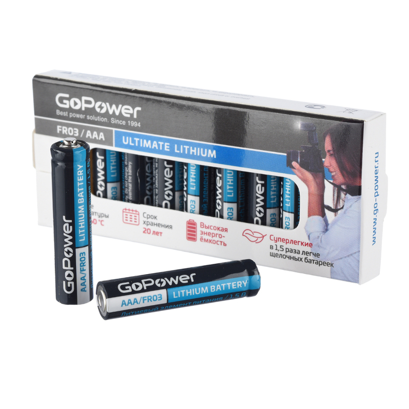 Батарейки GoPower FR03 Lithium 3V 10 штук в коробке