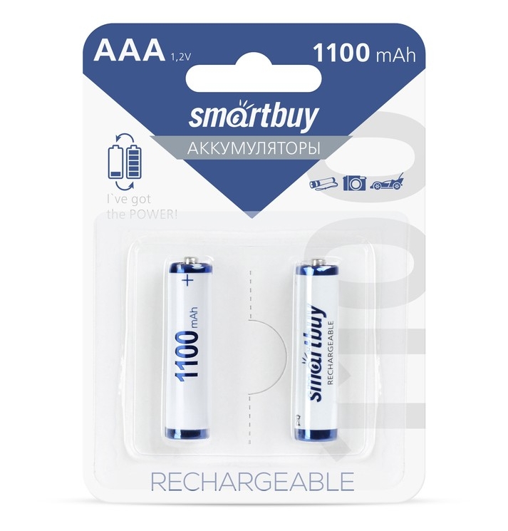 Аккумуляторные батарейки NiMh никель-металл-гидридные Smartbuy HR03 ёмкостью 1100мАч 2 штуки в блистере